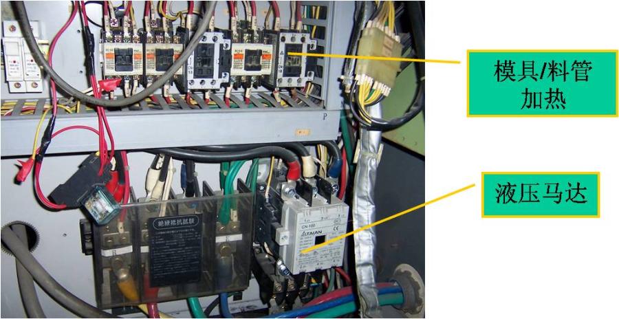 2.    接觸器的應(yīng)用,主要是用于料管加熱及液壓馬達(dá)控制兩種。